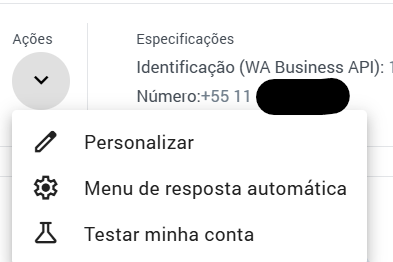 - Não pode ser um número fornecido pelo Meta, sendo necessário ser um número brasileiro (+55)