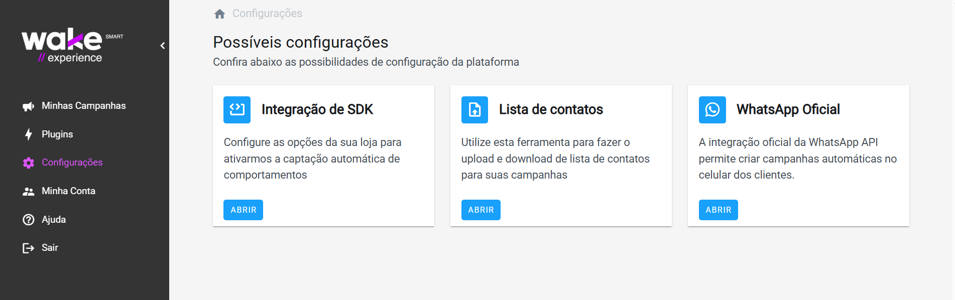 O WhatsApp, no contexto da plataforma Wake Experience Smart, é um canal estratégico de comunicação que permite às empresas automatizarem interações com clientes, enviar mensagens em massa e gerenciar campanhas diretamente pela API oficial do WhatsApp Business.