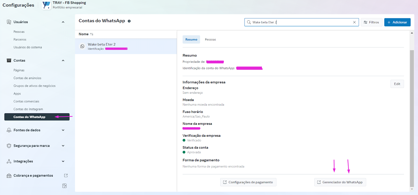 2. Vá até Contas do WhatsApp > Gerenciador do WhatsApp