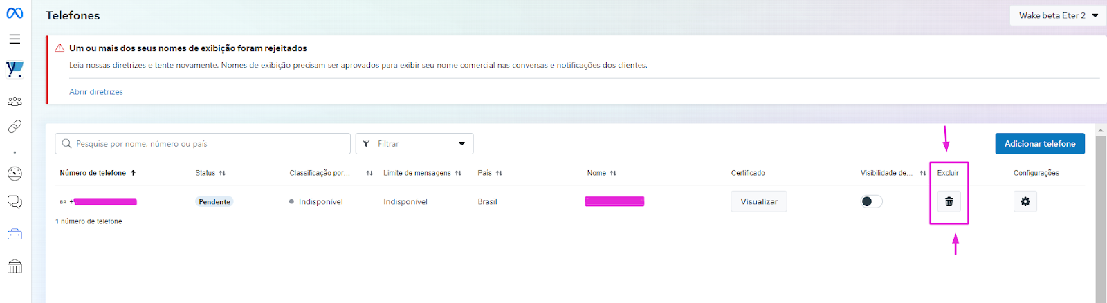 - O número ficará disponível para outras integrações com a Meta ou conforme a necessidade do usuário.