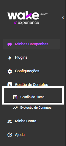 Menu lateral → Gestão de Contatos → Gestão de Listas