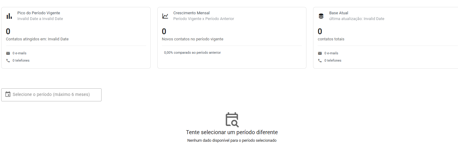 Nesta tela, você pode visualizar métricas, observar períodos e entender o impacto de campanhas, importações e limpezas de contatos.