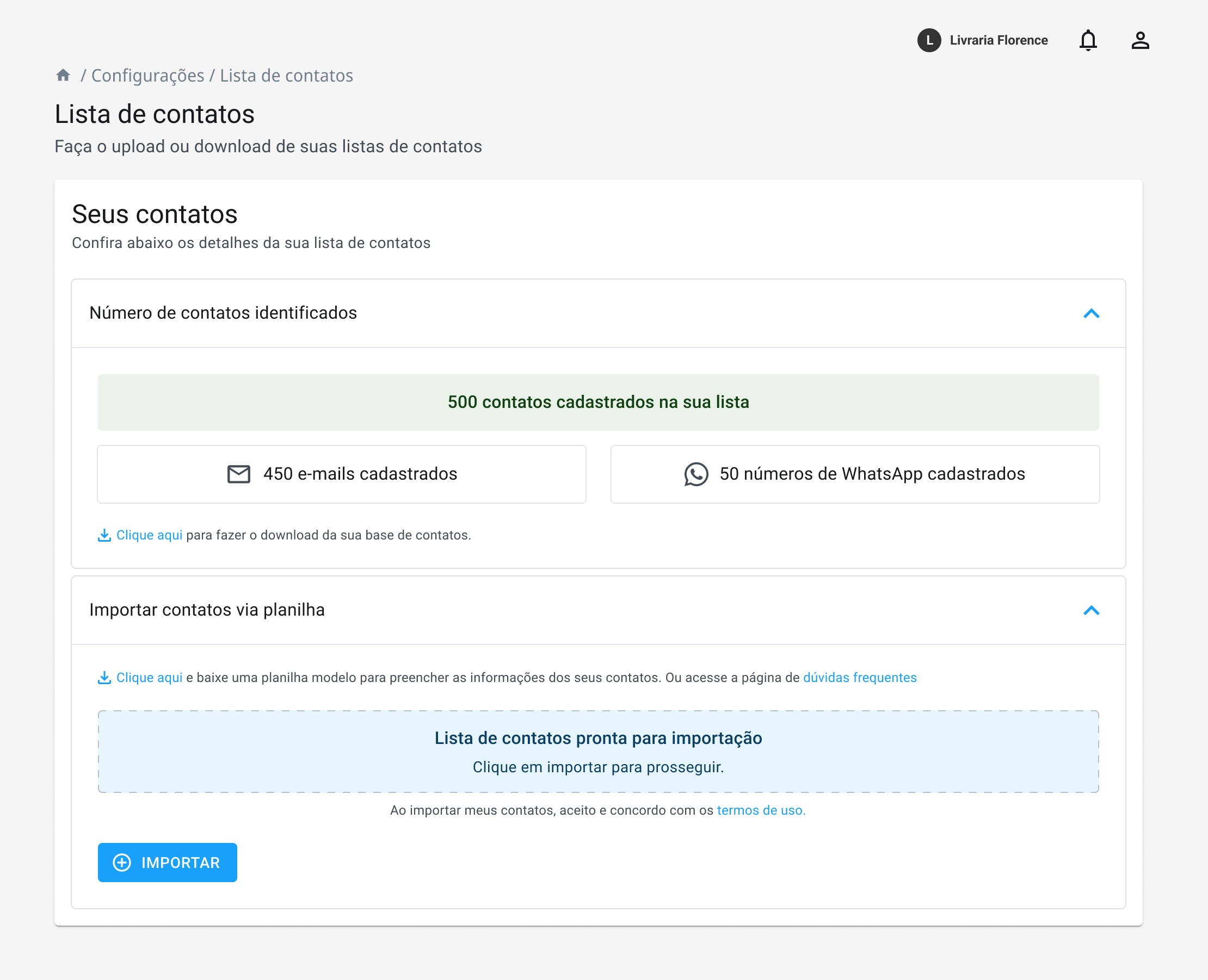 Assim que um arquivo válido for inserido, o botão “Importar” ficará habilitado.
