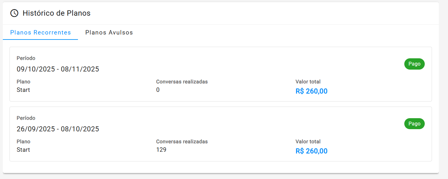 Essas informações ajudam a monitorar o consumo do plano e identificar quando é necessário fazer um upgrade.