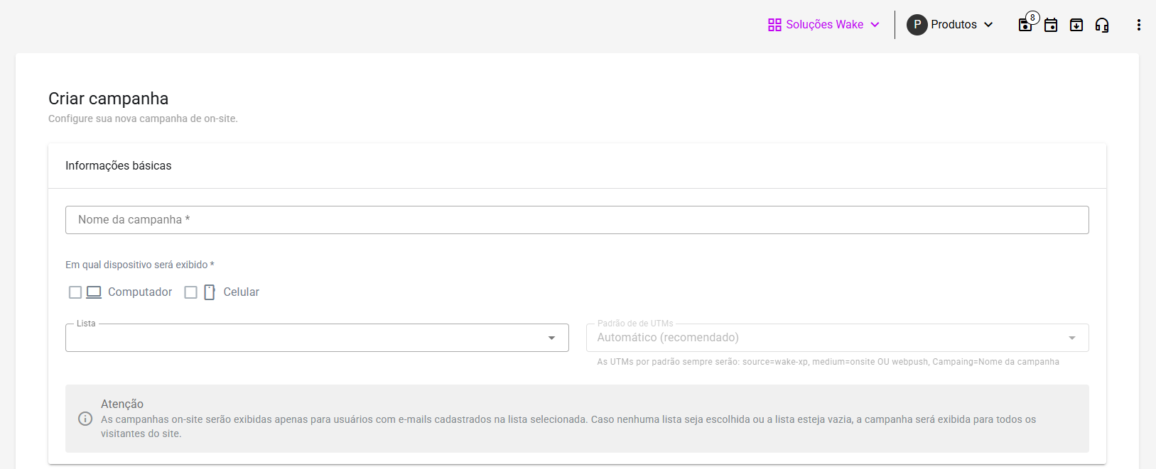 Nome da campanha* → Nome interno para identificação da sua campanha.