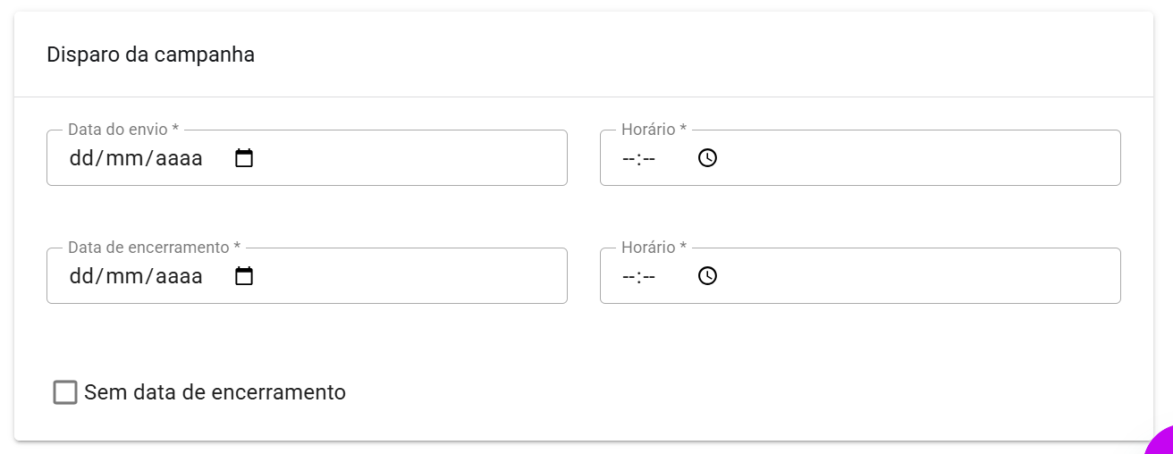 Esse tipo de campanha é utilizada para envios únicos e programados, ideais para comunicações imediatas, como promoções, lançamentos ou avisos específicos.Preencha as seguintes informações: