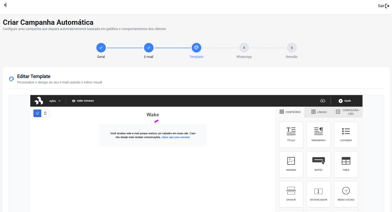 Nesta etapa, personalize o layout utilizando o editor visual.