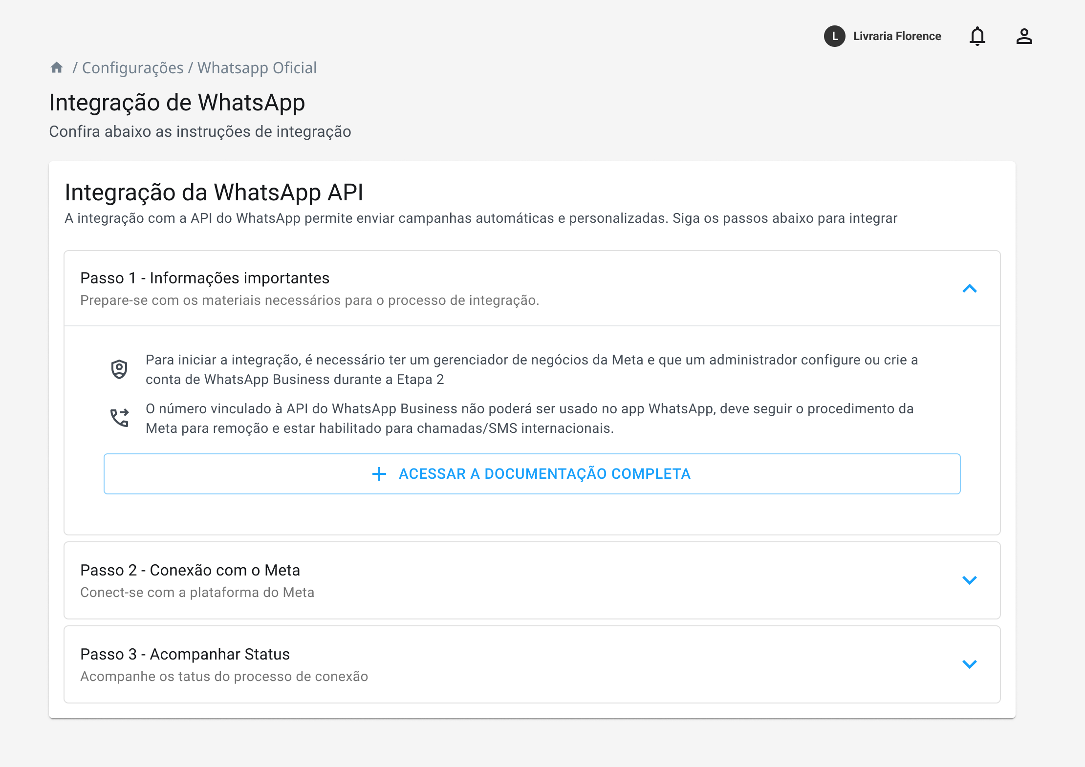 Com a integração, os usuários podem configurar e operar o WhatsApp como uma ferramenta de notificações e marketing, garantindo agilidade, personalização e conformidade com as políticas da Meta.