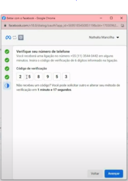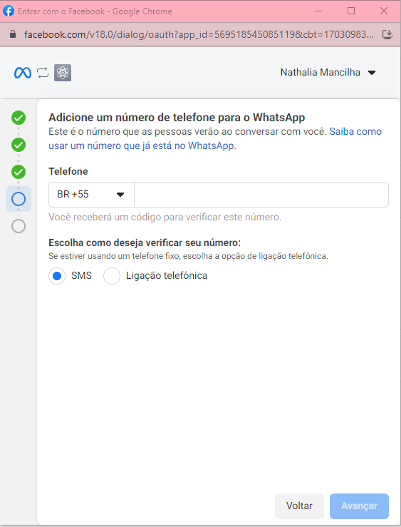 - Não pode ser um número fornecido pelo Meta, sendo necessário ser um número brasileiro (+55)