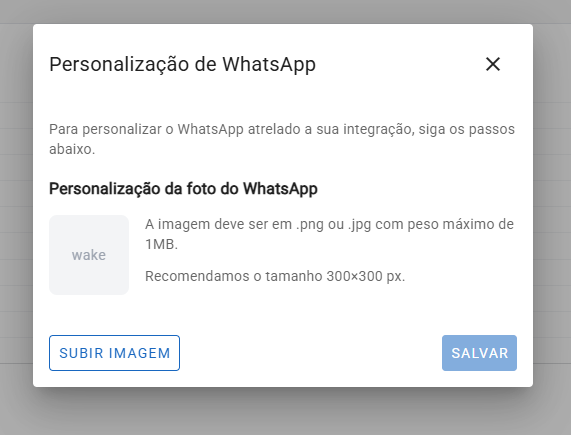 A personalização da foto de perfil permite deixar o WhatsApp integrado à Wake mais alinhado à identidade visual da sua marca, transmitindo mais confiança e reconhecimento aos seus clientes.